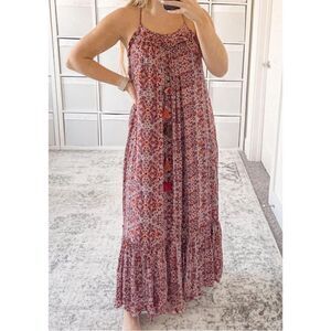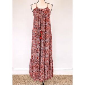 Misa Thale Marseille Print Pom Pom Tassel Floral Paisley Ruffle Maxi Dress Sz S
