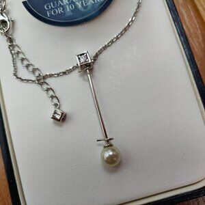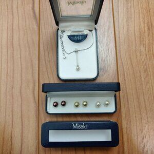 New in original boxes. Includes a necklace with pendant and a boxed set of 3 pearl stud pierced earrings. Earrings are approximately 10mm. Pendants is 1.5" long. Necklace is approximately 16" long. Smoke free home.