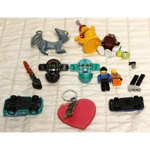 Pooh Bear, Lightning McQueen, lightsaber, Lego pieces etc