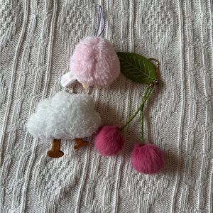 Miscellaneous keychain bundle. Comes with cloud, fuzzy cherries, and tiny pink lamb. All good condition, just cutting down on my collection.