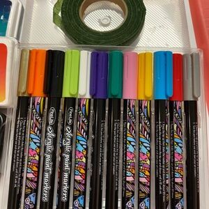 - 12 pack of fine line acrylic paint markers. 1 or 2 Gently/briefly used