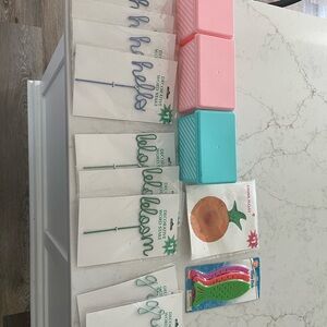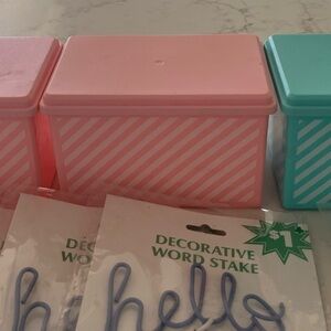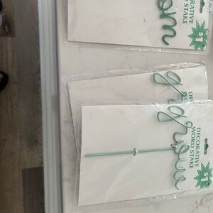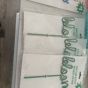 Enhance your home party decor with this stylish decorative word stake set. Featuring vibrant green and blue colors, these stakes add a playful touch to any celebration. Perfect for garden parties or indoor events.