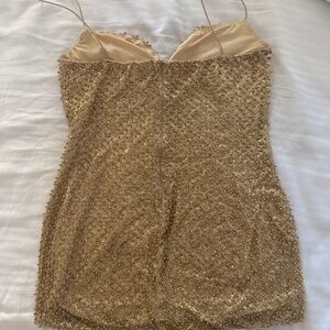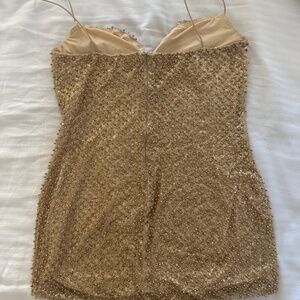 Mischa Embellished Sweetheart-Neck Mini Dress in Gold