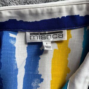 Mischa Womens Top Large Button Up Tie Front Artsy Art Deco Retro Striped 17913