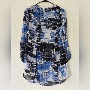 Mischa women's Print Multi-color Blouse Tunic Long Sleeves Medium V Neck…