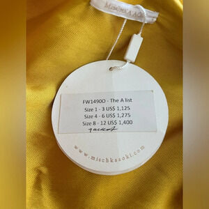 The A List green imitation fur jacket by Mischka Aoki made from multiple layers. It looks like feathers with stunning yellow tips. The very classic and elegant jacket cut has a very 1960s retro look with it's short, A-line style. Features a fully lined in thick, soft silky fabric and a one little button on the front.