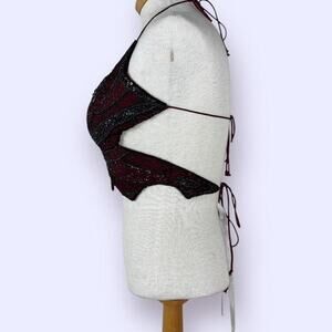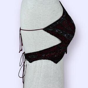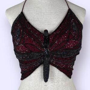 Misdemeanor Y2K Beaded Butterfly Top Size Medium Burgundy