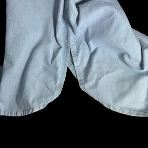 This measures 21" laid flat at underarms, at sides where the curved hem begins is also at the 21" mark, and curves to 30" at longest point. In very good pre-owned condition. Normal wear and tear noted, but no flaws or damage. Please review pictures and feel free to ask any questions or for more pictures prior to purchasing.
