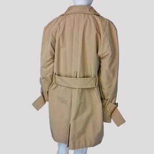 Misguided brand camel/taupe color double breasted long sleeve midi length trench coat. This trench coat is practically brand new has never been really worn at all there are no signs of being worn or minor flaws. Fabric material 100% Polyester Made in China. There is a coat belt as well buckles on the sleeves of the coat.