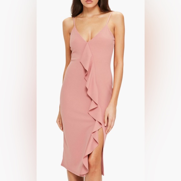 Misguided Ruffle Dress size 6. Color pink. Beautiful and flattering dress. Perfect condition, wore once. Dry cleaned and ready to ship!