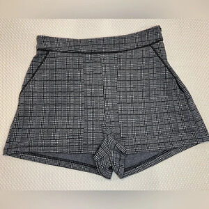 Adorable Misguided black plaid size 6 petite stretch shorty shorts large front pockets high waisted flat panel