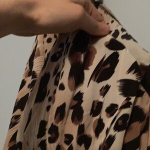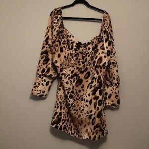 brown leopard print satin mini dress with sweetheart neckline.