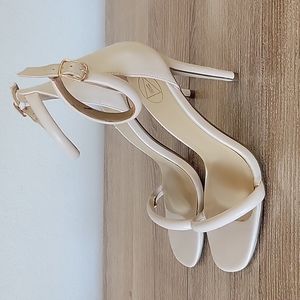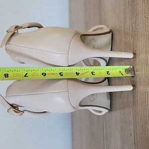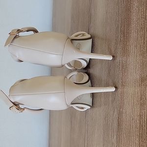 Cute pair of nude heels that will go with anything. Never used as can be seen from condition. The heel does have some scrapes and scuffs from storage but otherwise in great condition