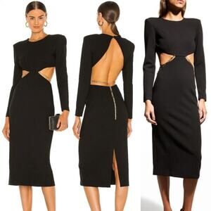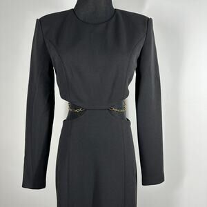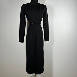 Misha Collection Black Kora Midi Dress w/ Chain Belt Size 6