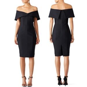 Misha Collection Black crepe off shoulder Brooklyn midi Dress Style RE1641DRBK