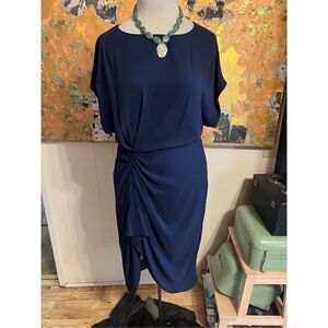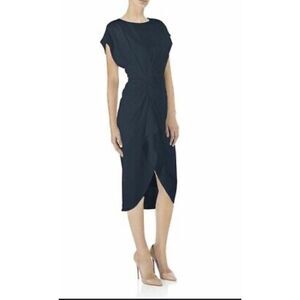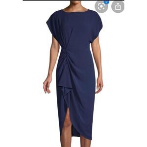 Misha Collection STUNNING Navy Blue Crepe Draped Kendall Dress w/Slit $340 Size