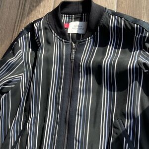 Striped zipper sporty bomber jacket, satin material. Purchased from Revolve.