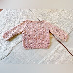 Misha & Puff Dusty Rose Confetti Pink Popcorn Sweater Kids Wool Handmade 3-4y