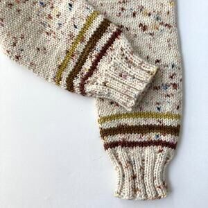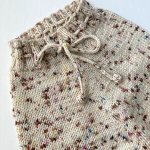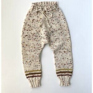 Cozy wool knit pants with drawstring waist in Confetti 16, cream with a blend of colorful and earthone confetti knit. Jogger style ankles with stripe detail.