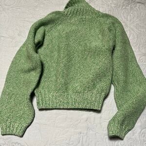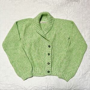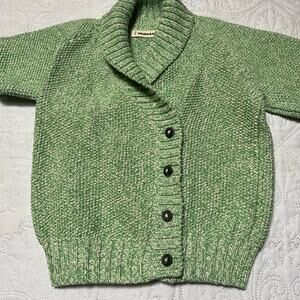 Misha & Puff knit saltwater cardigan sweater. Cowl neck with front buttons in Pima cotton. Color is possible Peapod green but not positive. Very good condition, minor wear. Size 6/7.