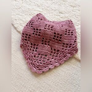 Misha & Puff Wool Kerchief Crochet Knit Scarf Handmade OS Kid Adult Antique Rose
