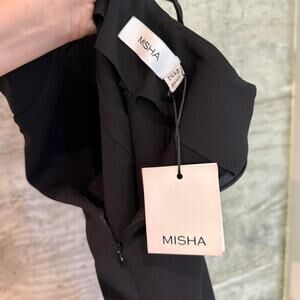 Misha Size 2 NWT Black midi dress with spaghetti straps and dramatic neckline