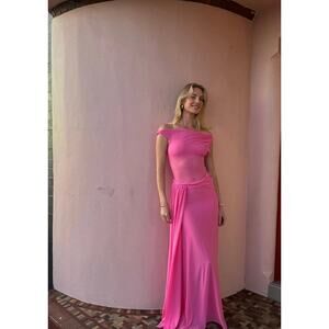 The 'Sisal' Mesh Maxi Dress in Orchid Pink, an effortless, yet sexy draped silhouette that skims the body.