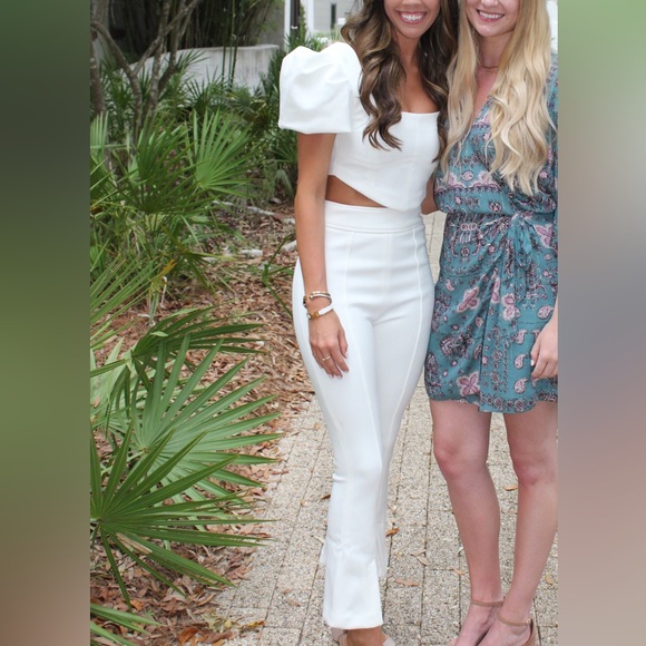 White two piece set- Crop puff sleeve top and flare crop pants, only worn once, perfect condition. Selling as a set!