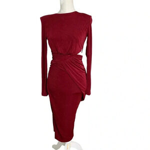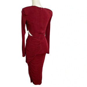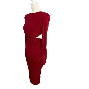 Misha Vina Drape Knit Long Sleeve Cut Out Midi Dress Wine Size 2 NWT