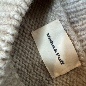 EUC Misha and Puff Highland Wool Popcorn Oyster, 2. Measurements in photos. I love this but have it in two forms and just paring down a bit. These are more lightweight compared to the traditional merino and very warm. Nothing to note re: condition, worn a handful of times.