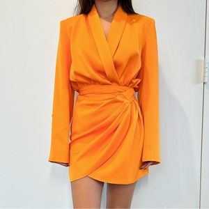 Misha collection Azera long sleeve, tangerine blazer crossbody, mini dress, size 4 but fits size 2 as well. Like new, dry cleaned