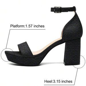 Mishansha Women's US 8.5 Black Ankle Strap Rhinestone Glamorous Heeled Sandals, Chunky Heeled Sandals For Party, Fashion Shoes