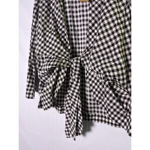 Mishca Black White Plaid Long Sleeve Tie Front Shirt Size Large