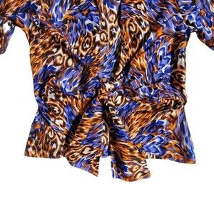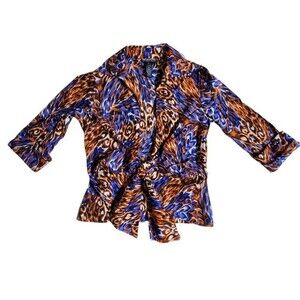 Brand: Mishca. Occasion: Casual. Size Type: Regular. Size (Women's): M. Material: 96% Cotton 4% Spandex. Neckline: Collared. Style: Tie front open blouse. Sleeve Length: 3/4 sleeve with cuff. Color: Blue, orange, black, purple, brown. Multi-color. Features: Open, Tie Front. Cuffed Sleeves.