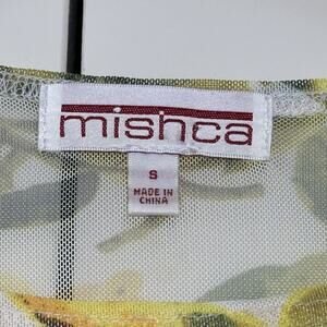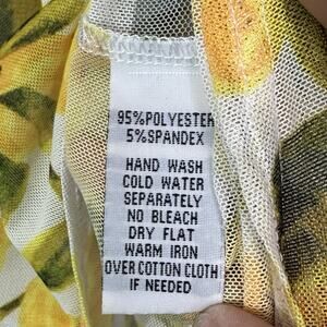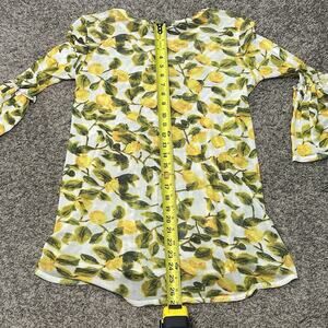 Mishca Sheer Mesh All Over Lemon Print Peplum Top Womens Sz S Stretch Whimsical