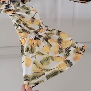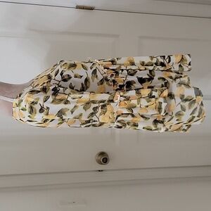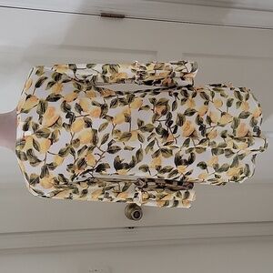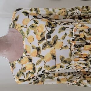 Mishca Size S Lemon / Citrus Babydoll Style Blouse, Sheer, Bell Sleeve, EUC
