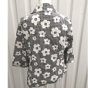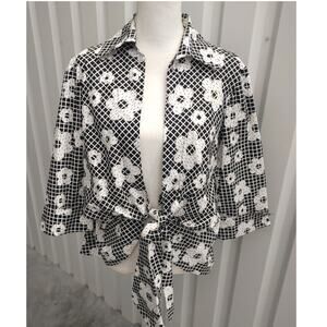 Mishca Top Tie Front Floral Checkered Black White Large Great condition