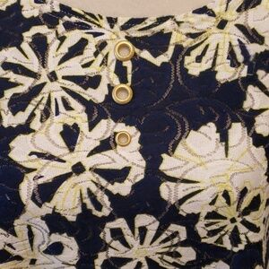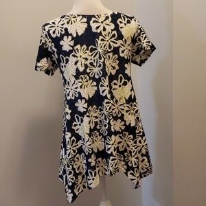 Mishca Tunic Top Sh-Slv Navy/ Wt/ Yellow EUC Md
