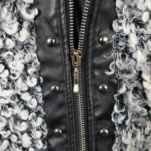 Mishca Vegan Leather Faux Lamb Fur Studded Jacket White and Black.