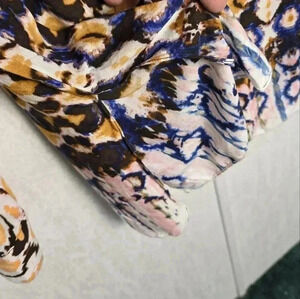 Mishca Womens L Tie Dye Animal Print Long Sleeve Tunic Top Button Up Pockets