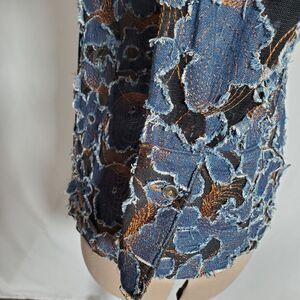 Mishca Women's Shirt Small Blue Denim Distressed Applique on Mesh Embroidered