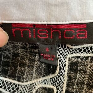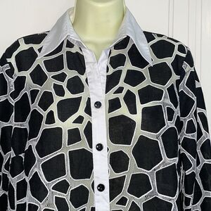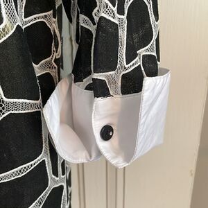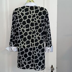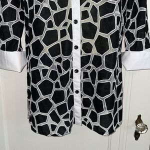 Mishca black & white cotton/polyester long button down shirt with 3/4 sleeves