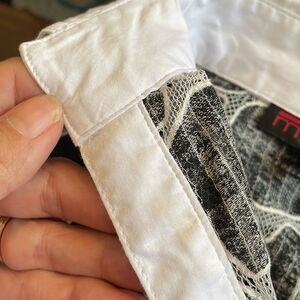 Mishca black & white cotton/polyester long button down shirt with French cuff 3/4 sleeves