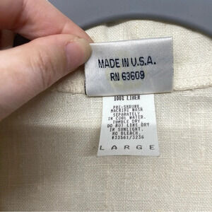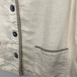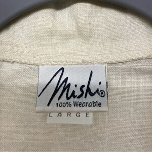 Mishi 100% Linen Cream Jacket Button Down Large Art to Wear Lagenlook USA Made