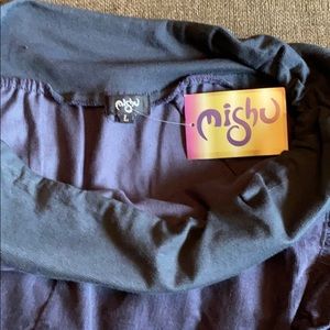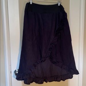 Mishu Cord Spanish Skirt - Size Large - Greyish Blue. Ruffle all round the hem. Cross front. Stretch knit waistband. New with tags. Waist measures approx 15 inches flat and unstretched. Approx 31 inches waist to hem. So fun.