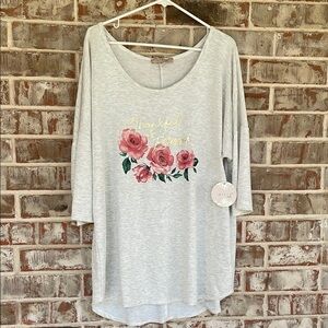 Embrace elegance with this gray floral women's top. Featuring a beautiful rose design, it's perfect for any casual outing.