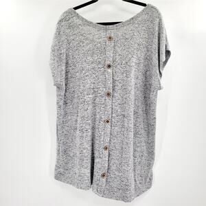 Misia Heather Gray Faux Button Back Relaxed Fit T-Shirt Women’s Plus Size 2X