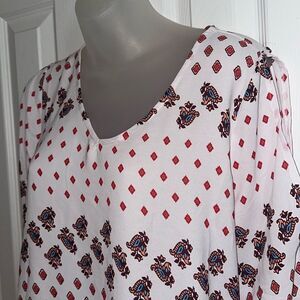 Misia Sheer White Boho Hippie Paisley Print Top Peep Shoulder Medium M NWT