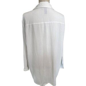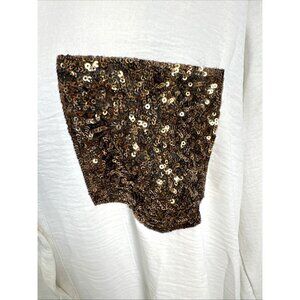 Misia White Collared Long Sleeve Button-Down Shirt With Brown Sequin Pocket XL