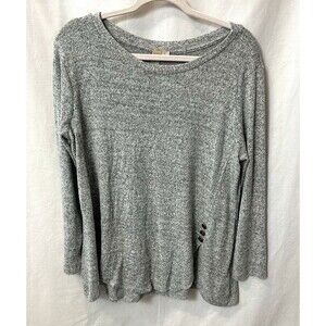 Misia Womens Large Gray Marbled Long Sleeve Rayon Blend Tunic Top Button Accents